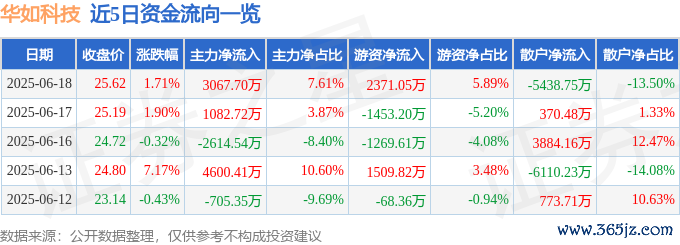 本站消息,截至2025年6月18日收盘股查查,华如科技(301302)报收于25.62元,上涨1.71%,换手率18.71%,成交量15.76万手,成交额4.03亿元。